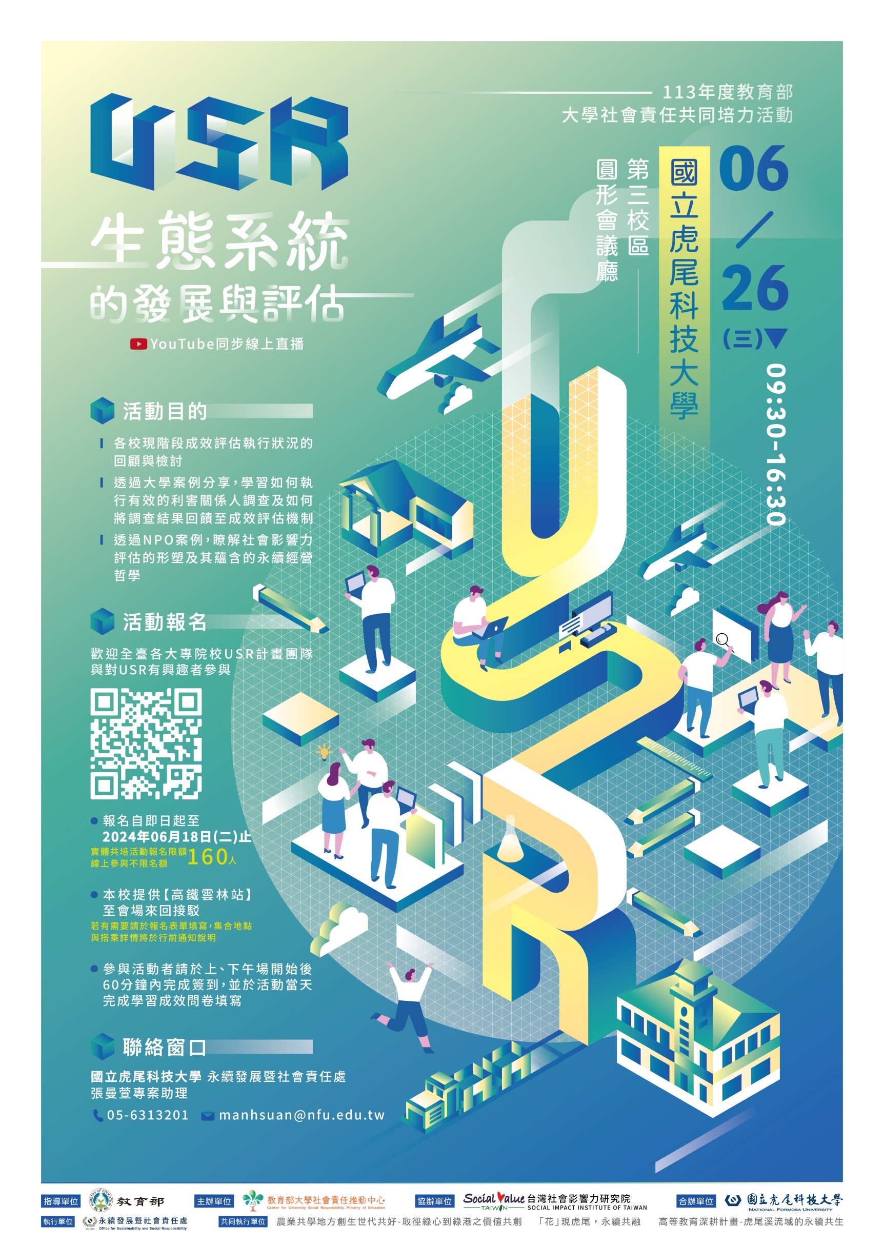 國立虎尾科技大學辦理113年教育部大學社會責任共同培力活動-《USR生態系統的發展與評估》,歡迎有興趣之教職員生踴躍參加